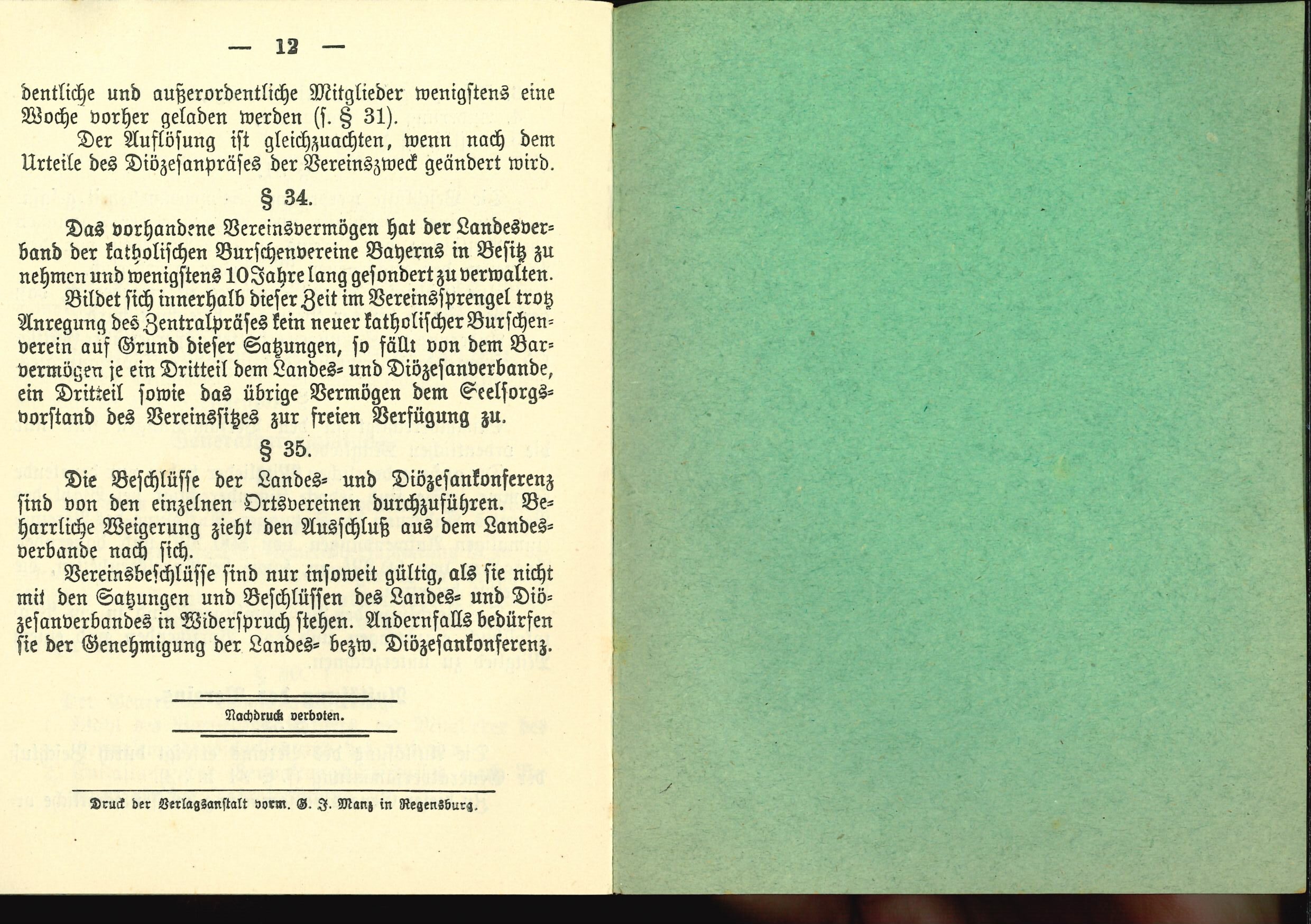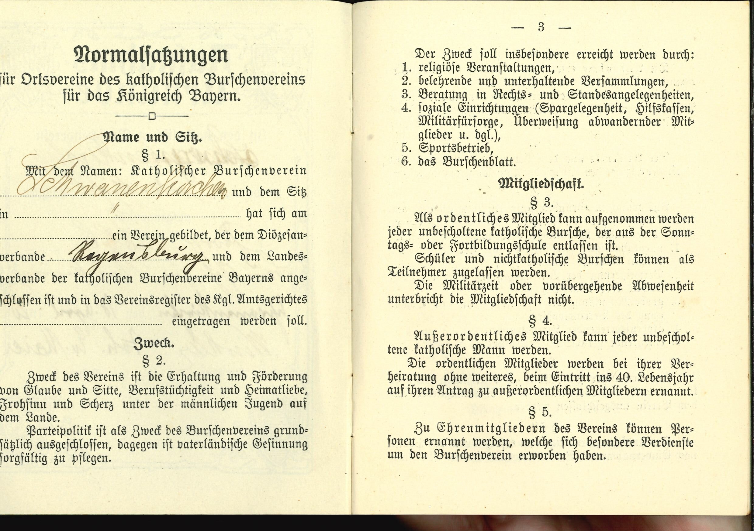 Fahne und Satzung des Katholischen Burschenverein im Königreich Bayern.