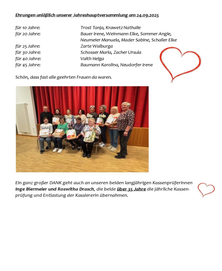 Roswitha Drasch und Inge Biermeier (nicht auf dem Bild) wurde für über 30 jährige Kassenprüfung gedankt.