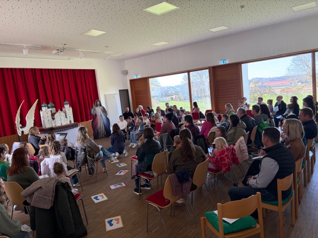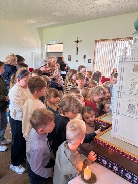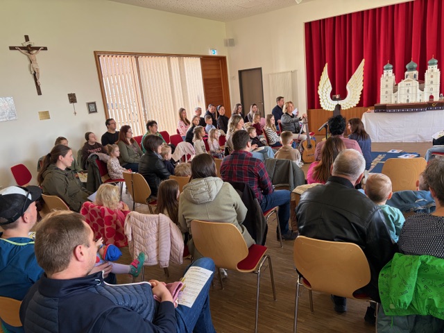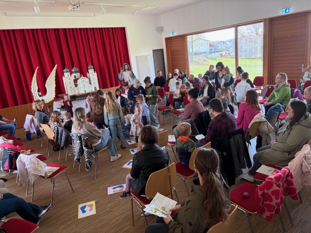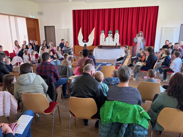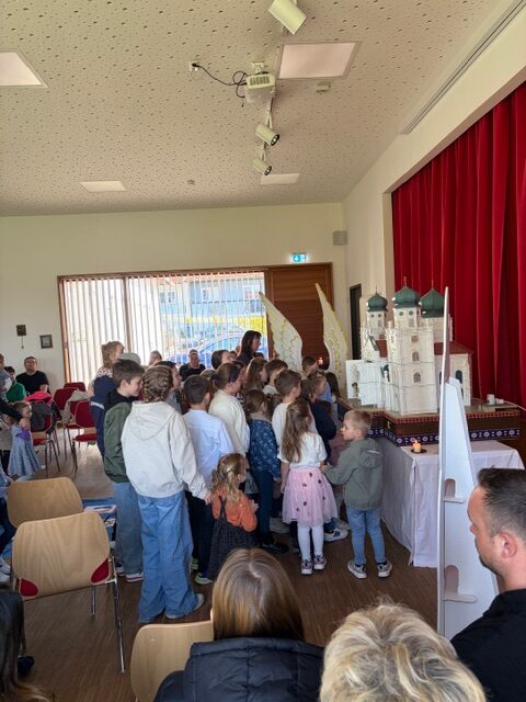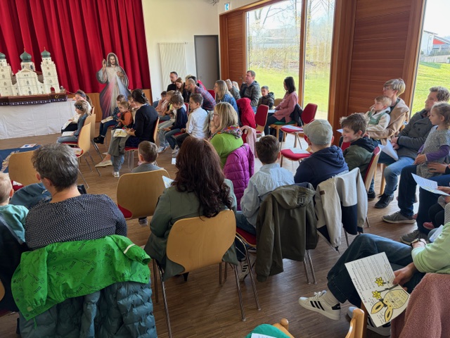 Der Kinderwortgottesdienst hat schon Tradition an Ostern im Pfarrsaal. Der gut gefüllte Pfarrsaal war mit 45 Kindern plus Eltern gut besucht. Erika Kraus bereitete die Feier vor und es war ein tolles Programm für die Kinder vorbereitet. Mit ein Höhepunkt der Passauer Dom der sich selbst öffnete und im inneren die Auferstehungsszene darstellte. Der Dom wurde von Herrn Kufner aus Flintsbach gebaut und zur Verfügung gestellt. Der Auferstandene Jesus war in Lebensgröße mit dabei. Zum Abschluss hat jedes Kind ein Ostergeschenk erhalten.
