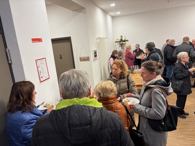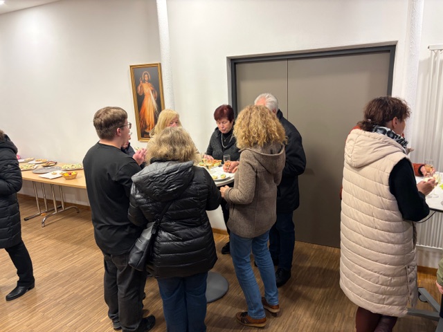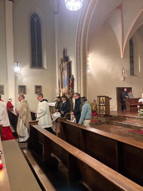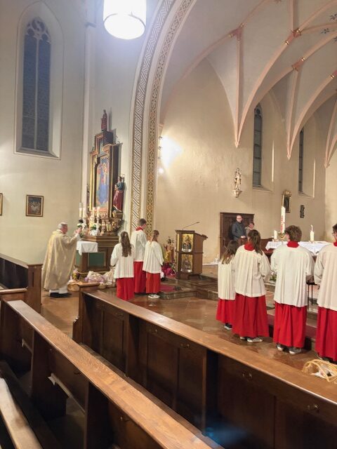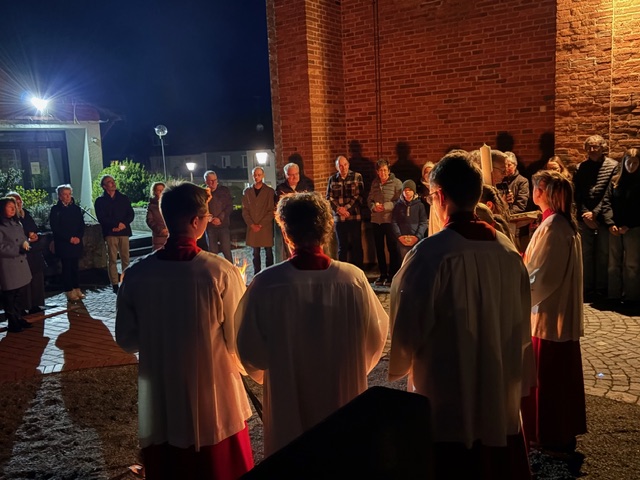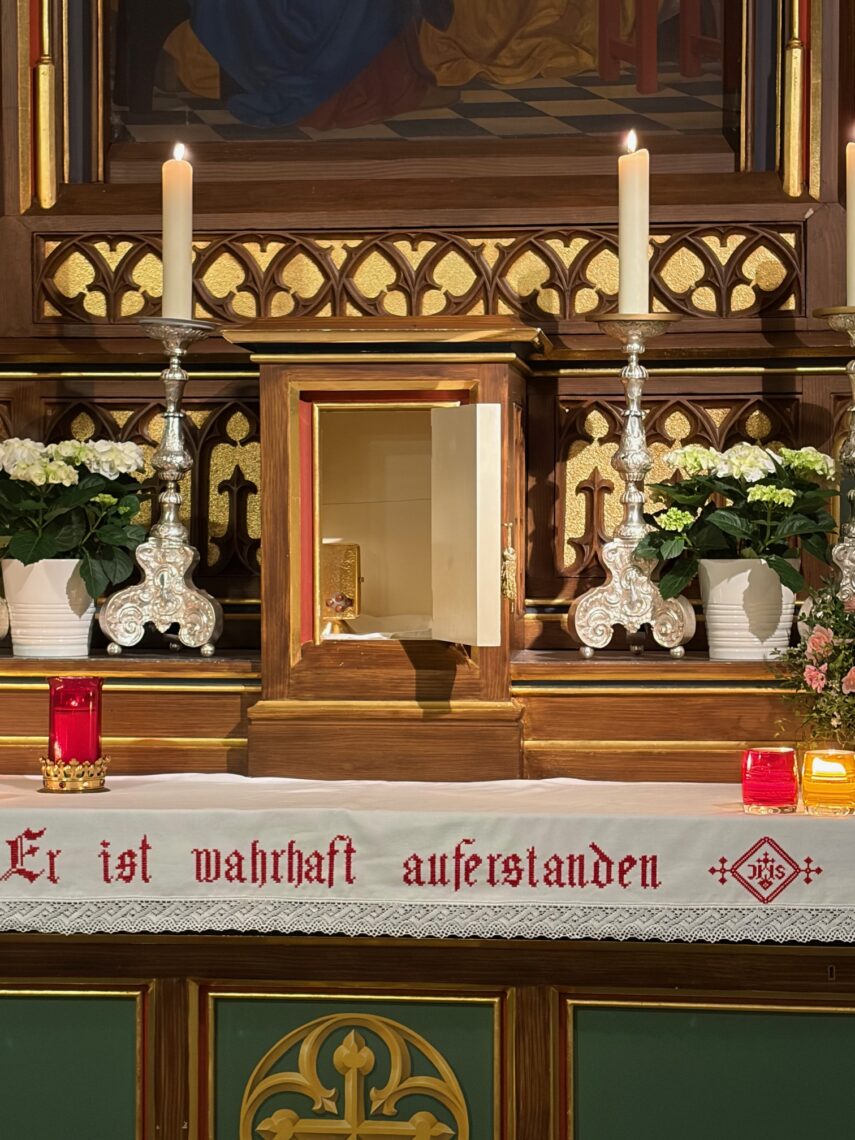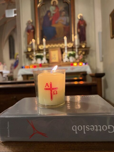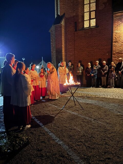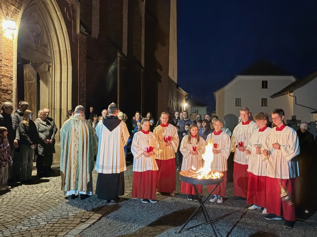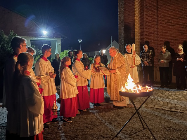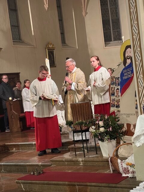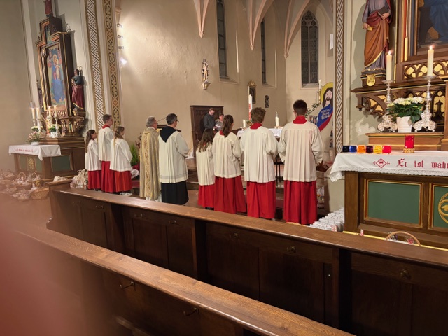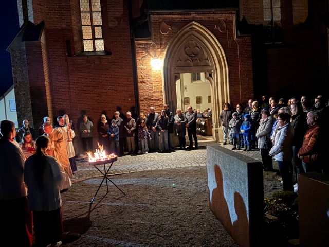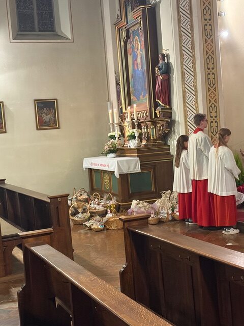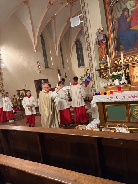 Ein feierlicher Gottesdienst zur Auferstehung Jesus. Eine fast komplett gefüllte Kirche am Karsamstag zur Osternacht. Es wurden viele Speisen zur Segnung mitgebracht und am Ende gab es für jeden ein schön bemaltes Ostereier von Familie Drasch am Ausgang. Anschließend trafen sich die Gläubigen zur Agape im Pfarrsaal.