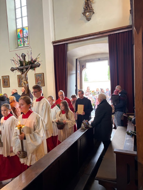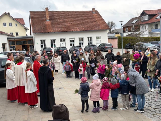 Ein gut besuchter Palmsonntaggottesdienst mit vielen Kindergartenkinder samt Eltern in Schwanenkirchen. Am Pfarrplatz wurden die Palmbuschen geweiht und erst dann sind alle in die Kirche eingezogen. Ich hoffe den Kindern hat es gefallen.